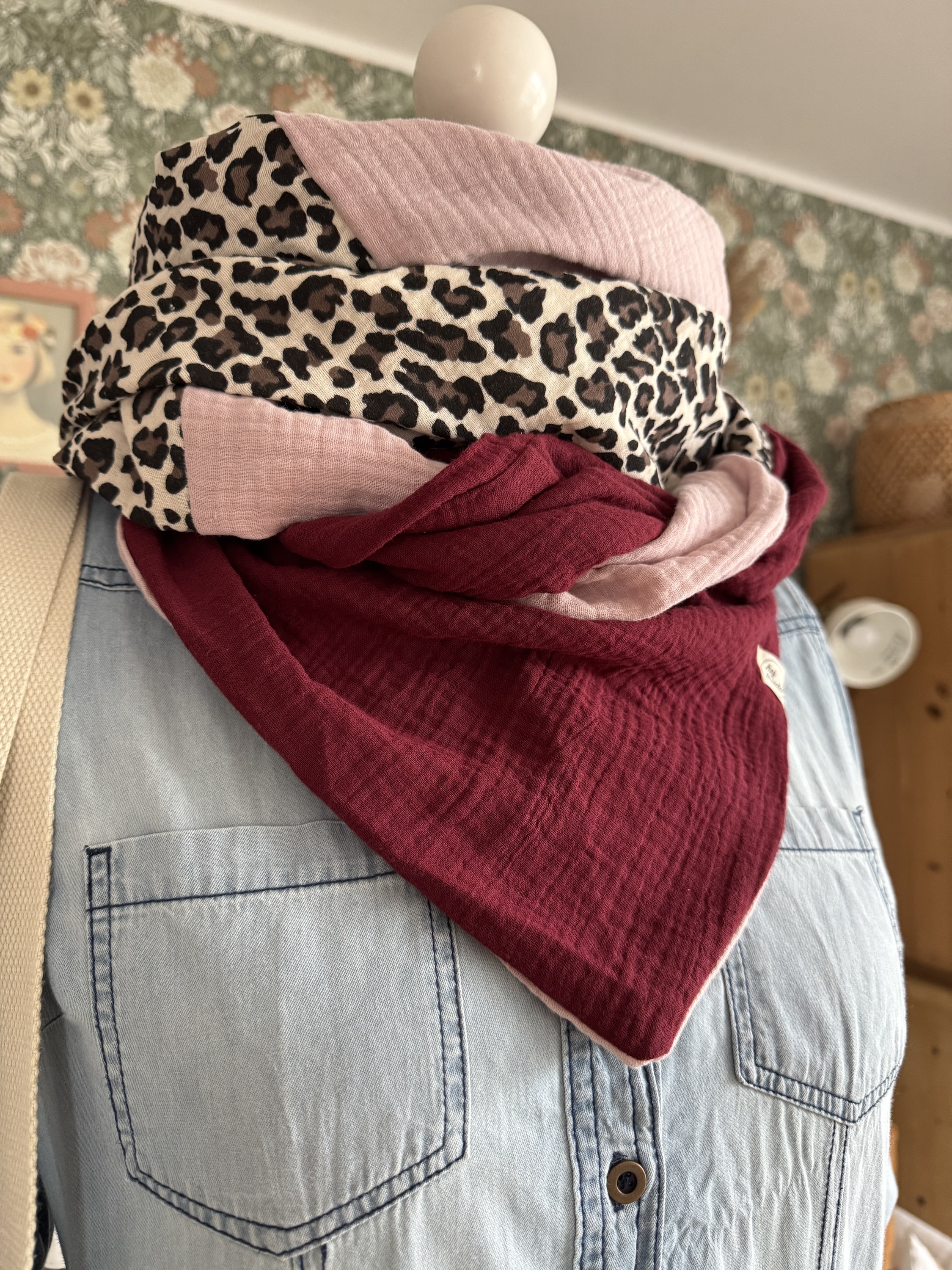 Musselintuch HANNA XL im coolen Colorblocking-Design in tollen Farben und Leo-Muster!
