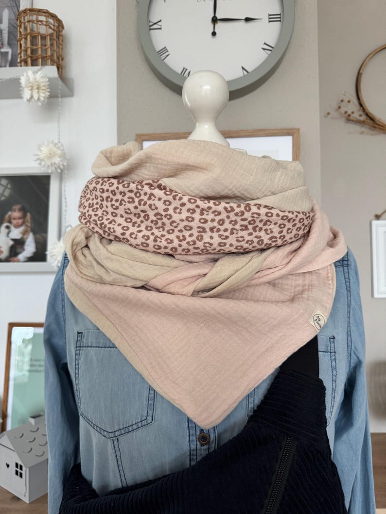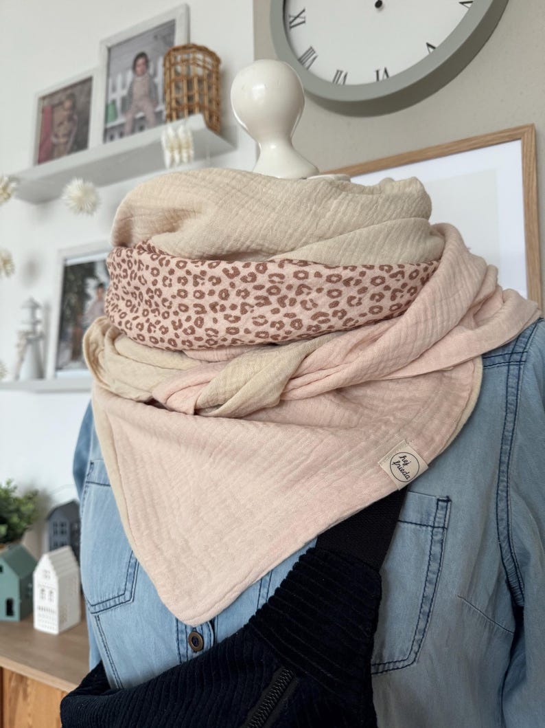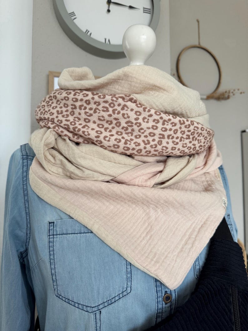 HANNA Musselintuch XL Colorblocking beige/Leo/blush