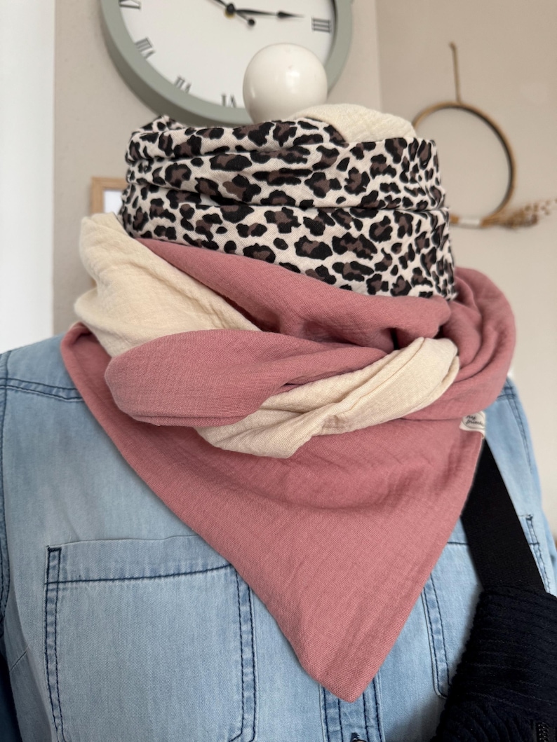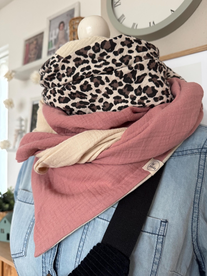 Musselintuch HANNA XL im coolen Colorblocking-Design in tollen Farben und Leo-Muster!
